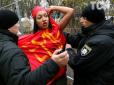 Таким чином активістка "відсвяткувала" 100-річчя Жовтневого перевороту. Акція тривала кілька хвилин і неабияк розважила випадкових перехожих, які знімали оголену дівчину на телефони. У Києві активістка FEMEN провела чергову провокаційну акцію. Цього р...