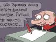 Нещодавно з'явилися чутки, що президент Росії Володимир Путін, можливо, страждає на хворобу Паркінсона, оскільки у нього помітили симптоми цієї хвороби. У мережі з'явилася карикатура на цю тему. Ілюстрацію опублікував її автор, карикатурист Сергій Йолк...