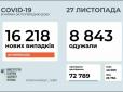 Станом на ранок п'ятниці, 27 листопада, в Україні офіційно підтверджено 693 407 випадків коронавірусної інфекції. З них 16 218 виявлено за минулу добу, що стало рекордом з початку епідемії, передають Патріоти України. Від COVID-19 в країні померли вже ...